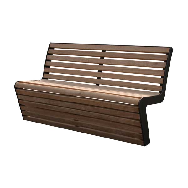 Het ontwerp van de bank met rugleuning en armleuningen is gebaseerd op de S-vorm. Hierdoor heeft de zitbank met rugleuning geen steunen aan de achterkant.