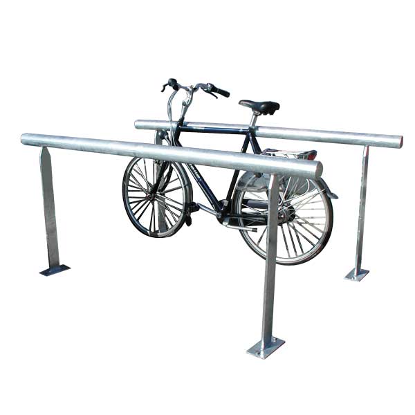 • Geleidehek dat ook inzetbaar is als fietsleunbeugel. Met hoge platstalen staanders.