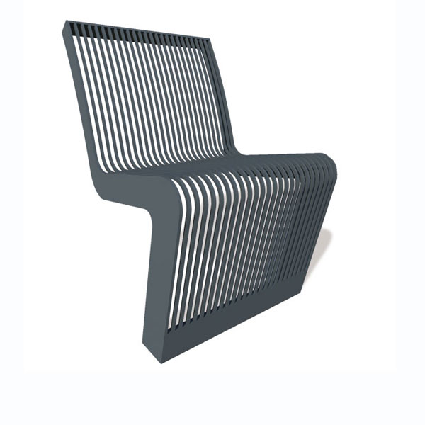 • Stoel model FalcoLinea, zitdelen van staal. De stoel komt als het ware uit de grond rijzen en door het gebruik van staal (8 mm) krijgt het een industrieel uiterlijk.