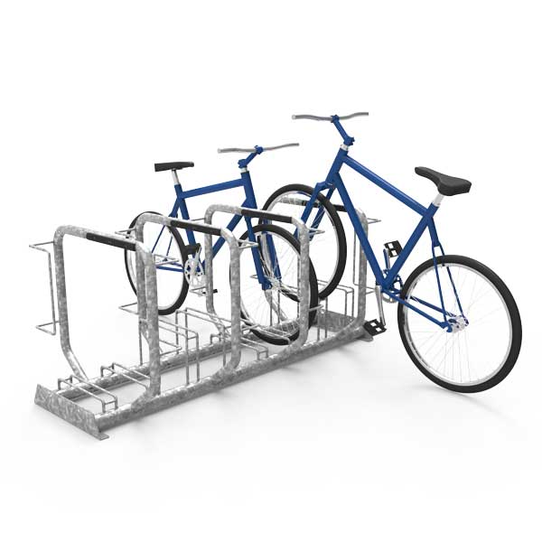 • FalcoFida dubbelzijdig fietsenrek met Duitse DIN normering. Aanleunbeugel is voorzien van kunststof beschermstrip.